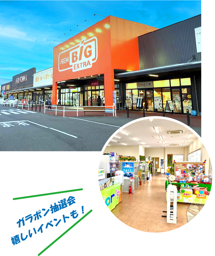 カラーズイオンタウン湖南店は滋賀県湖南市にある大型ショッピングセンター『イオンタウン湖南』内にあります。お買い物ついでにお車の試乗、オイル交換やタイヤ交換はもちろん日常整備や点検など便利にご利用して頂けます。商談テーブルも8席あり、無料ドリンクコーナーやキッズコーナーもご用意しており、小さなお子様連れのファミリーから、初めてご来店のお客様に喜んでおくつろぎ頂けるお店作りを目指しています。